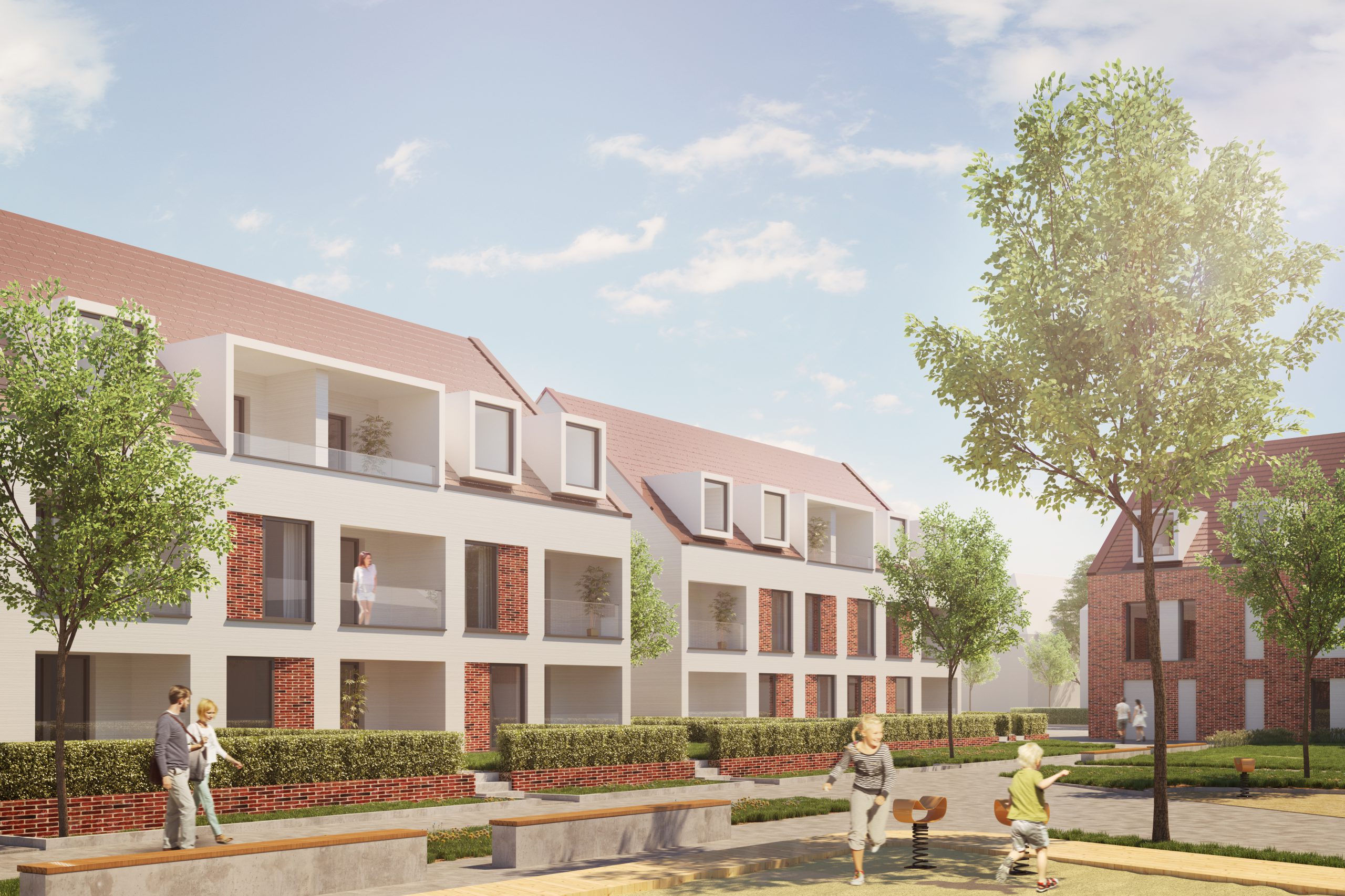 Sämtliche Gebäudekubaturen orientieren sich in Maßstäblichkeit und Dachform an der Nachbarschaft, um die vorhandenen, stadträumlichen Qualitäten, insbesondere die des Straßenraums, zu erhalten und fortzuführen. Die Straße weitet sich in Teilbereichen auf und die neuen Gebäude greifen die Fluchtlinien des Bestandes auf.