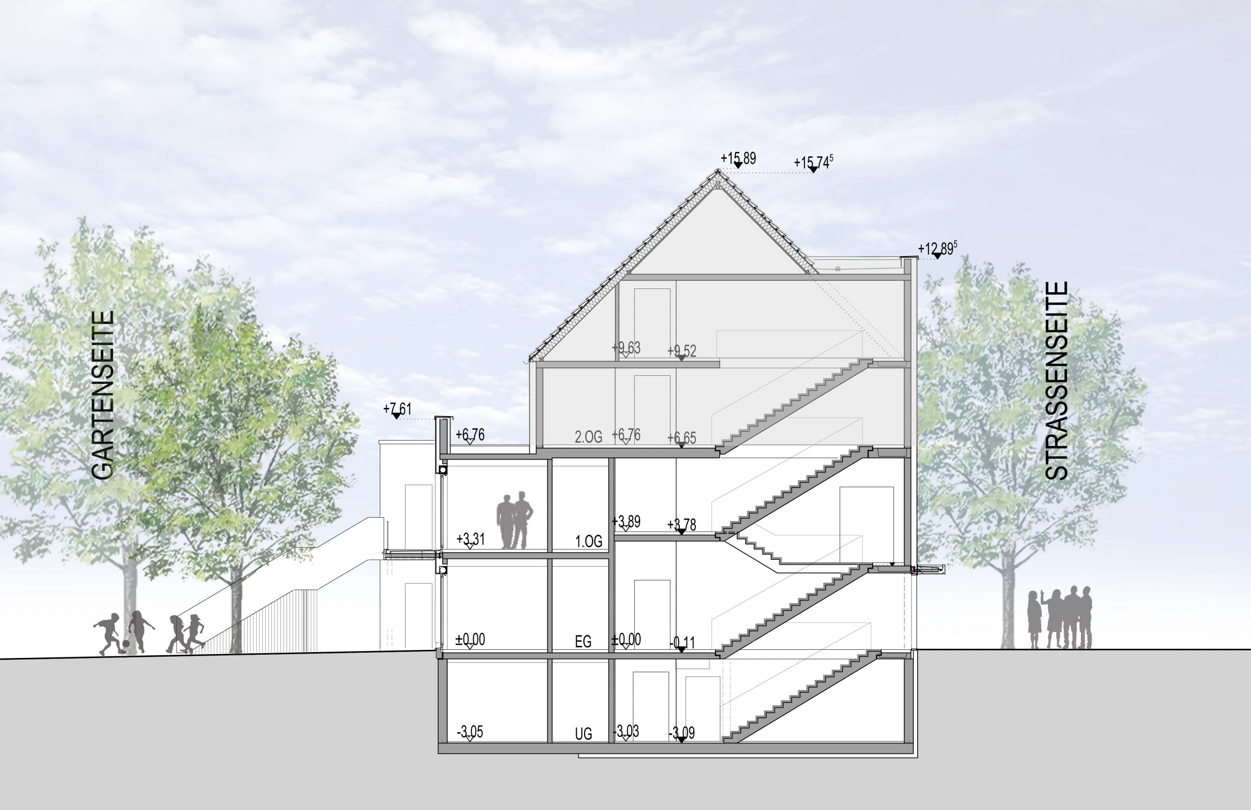 Die notwendigen Stellplätze sind in einer Tiefgarage untergebracht.
