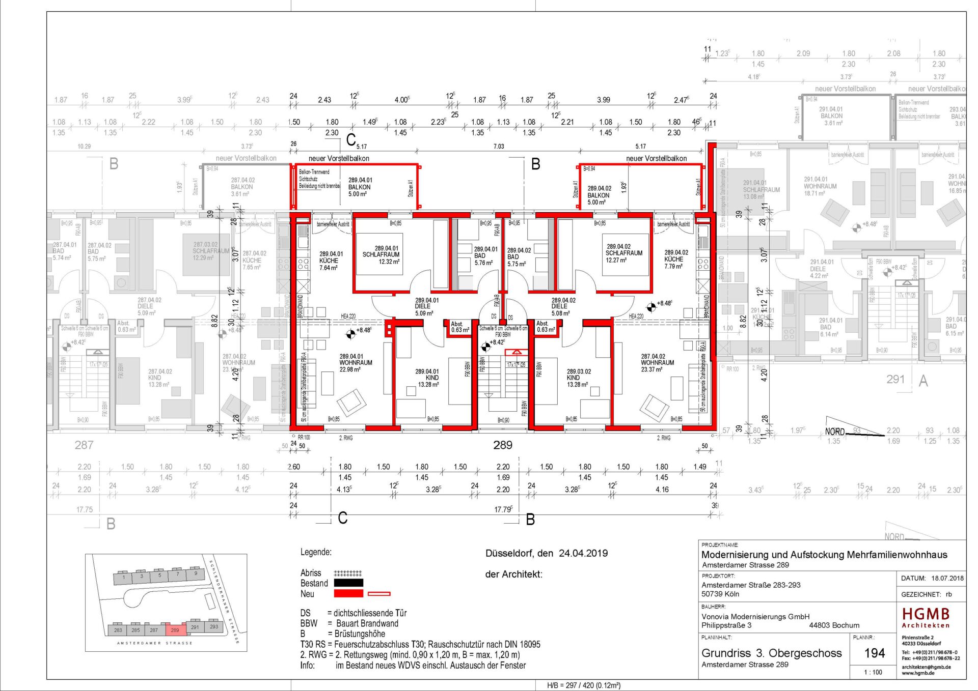 Vorausgegangen waren umfangreiche, durch uns durchgeführte Potenzialanalysen für die Bestände entlang der Rheinschiene. Hierbei wurden die technischen, planungs- und baurechtlichen Rahmenbedingungen für eine Nachverdichtung ausgelotet und eine Priorisierung der Gebäude in Bezug auf die Machbarkeit vorgenommen.