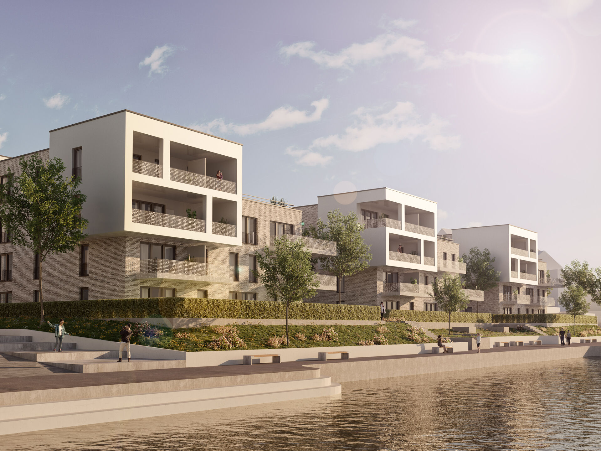 Das Quartier mit seiner eigenständigen und selbstbewussten Architektur öffnet sich zur Ruhr, die westlich des Areals verläuft.